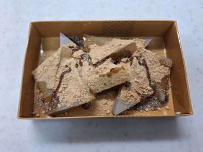 きな粉と濃厚な黒蜜をかけて絡めれば