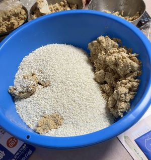 麹と塩は容器の中でしっかりよく混ぜておきます。