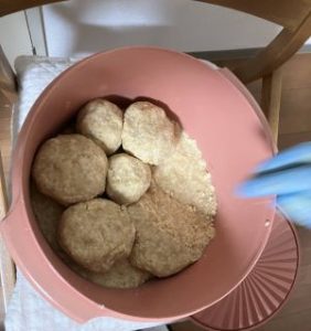 麹と塩は容器の中でしっかりよく混ぜておきます。